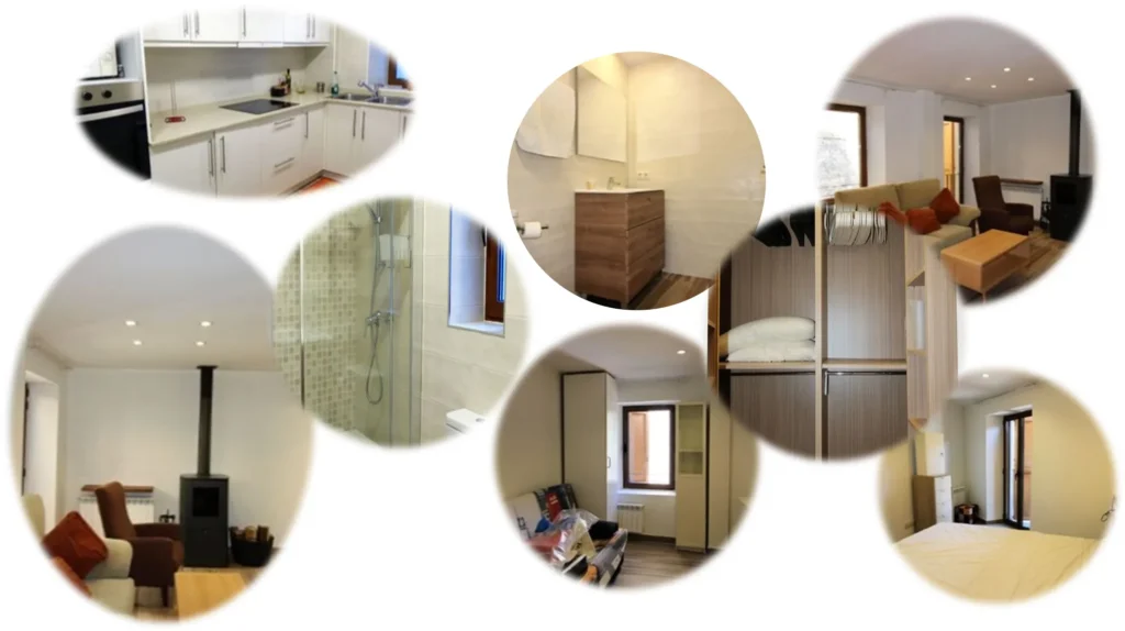 Consta de rebedor, saló-menjador, cuina americana totalment equipada, un dormitori doble i un bany. Compte amb estufa a pellets i els serveis d’aigua i llum en situació d’alta. Terres ceràmics imitant a parquet i la coberta d’una sola pendent fa que el seu interior tingui sostres alts amb bigues de fusta.